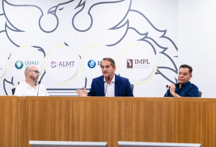 Presidida pelo deputado estadual Wilson Santos (PSD), a reunião contou com a presença dos membros Beto Dois a Um (PSB) e do suplente Eduardo Botelho (União), que participou em substituição à deputada estadual Janaina Riva (MDB).