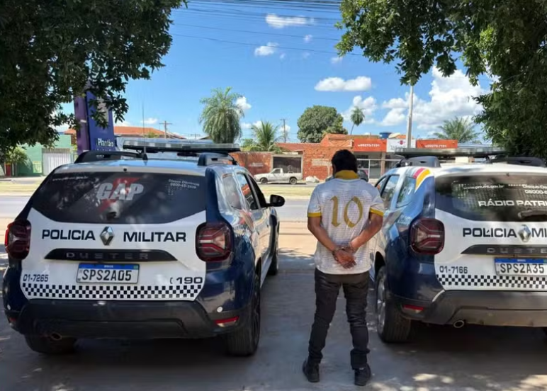 Durante as buscas, equipes receberam a informação de que o suspeito havia fugido para a região da rodoviária de Cuiabá. Ele foi encontrado em uma área de mata, ainda tentando escapar. O suspeito foi abordado, identificado e preso em flagrante. Em seguida, foi encaminhado à delegacia.