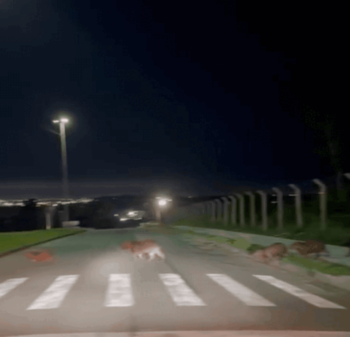 Segundo ele, os animais estavam na calçada aguardando o momento certo para atravessar. Ao perceber a situação, o condutor parou o veículo, imaginando que a travessia seria rápida.