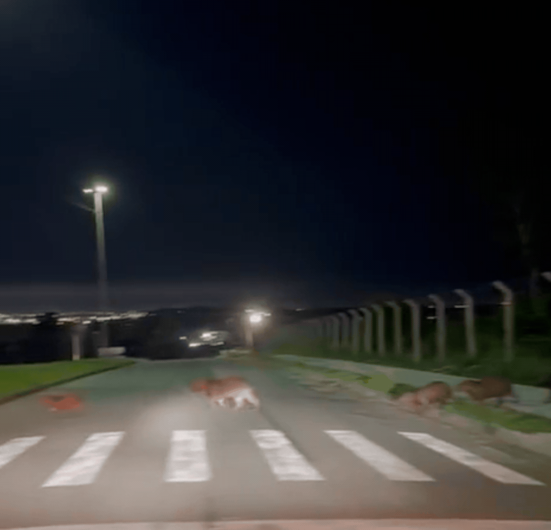 O motorista Lucas Abreu registrou uma cena inusitada na noite deste sábado (11), no bairro Santa Rosa, em Cuiabá. Ao passar pelo local, ele se deparou com duas capivaras “pedindo licença” para atravessar a rua, paradas na faixa de pedestre.